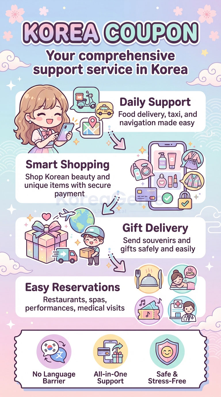 KoreaCoupon helps foreigners live and travel in Korea. We support you in your selected language, so things feel simple and clear.